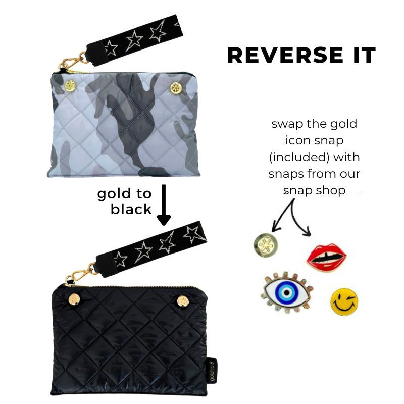 The Reversible Clutch w/Starz Strap- Grey Camo / Black